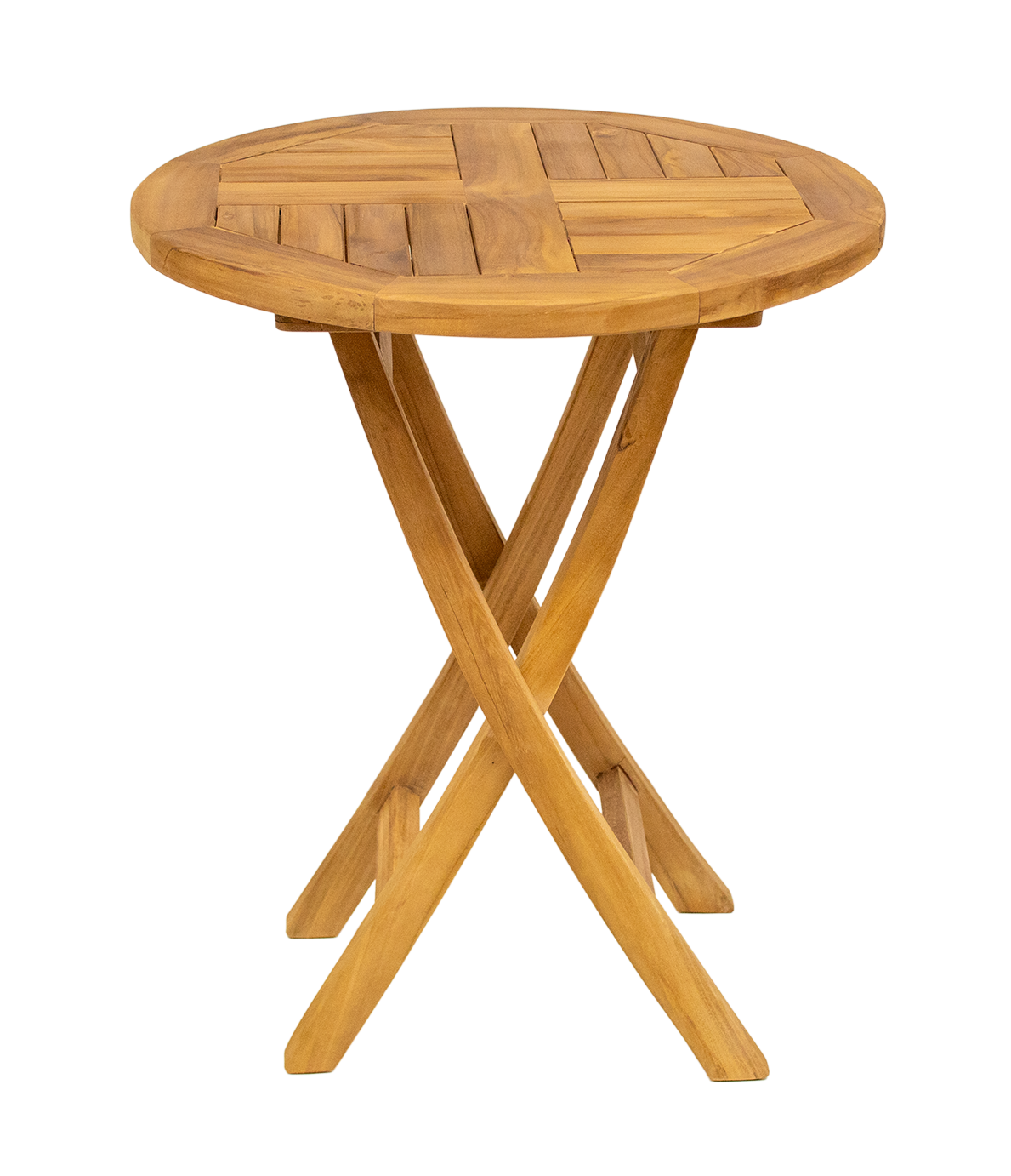 Dieser kleine Rundklapptisch ist eine praktische und vielseitige Ergänzung für jede Terrasse, jeden Balkon oder Garten. Mit seiner kompakten Größe und seinem faltbaren Design ist er leicht zu transportieren und zu verstauen. Denn dank seines einfachen Klappmechanismus lässt sich der Tisch in Sekundenschnelle aufstellen und zusammenklappen, wobei seine Stand-up Funktion ihn ermöglicht von alleine auch im eingeklappten Zustand zu stehen. Er kann leicht in einem Schuppen, einer Garage oder sogar im Kofferraum eines Autos verstaut werden und ist somit, beispielsweise für Campingausflüge oder Picknicks im Freien bestens geeignet. Zudem zeichnet er sich durch seine runde Form aus, die ihm einen modernen und ansprechenden Look verleiht. Hergestellt aus hochwertigem Teakholz, strahlt der Tisch eine zeitlose Eleganz aus und verwandelt jedes Outdoor-Setting in einen gemütlichen und stilvollen Ort.